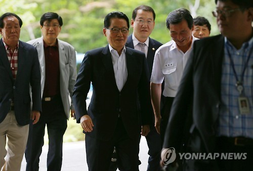 | 박지원 의원, 항소심 선고공판 출석 저축은행들로부터 금품을 수수한 혐의 등으로 기소돼 1심에서 무죄를 선고받은 새정치민주연합 박지원 의원이 9일 오후 서울 서초구 서울고등법원에서 열린 항소심 선고공판 출석을 위해 건물로 들어서고 있다. |