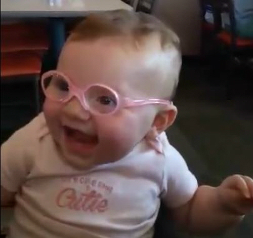 안경을 쓴 후 밝고 또렷하게 보인 세상이 좋았을까. 아기는 이내 차분해졌고 환한 미소를 엄마와 아빠에게 보냈다.