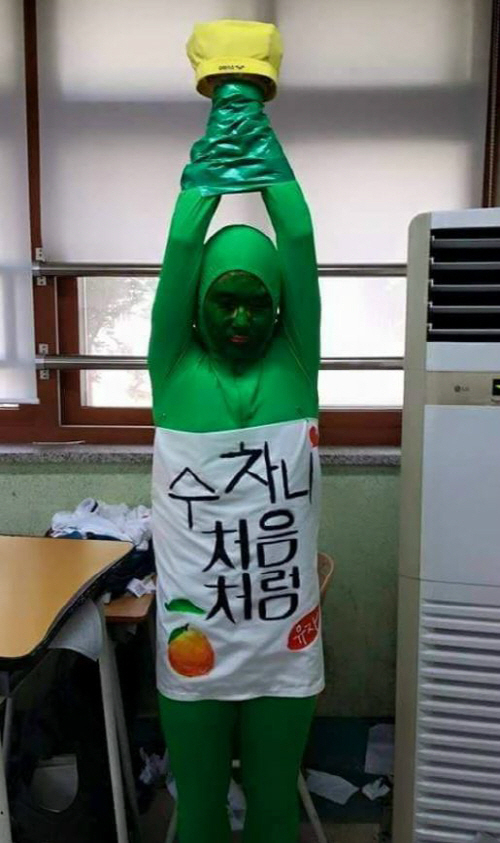 공개된 사진 속에는 학생이 백원짜리 동전으로 분장한 모습, 바지에 오줌을 싼 회색 트레이닝복 차림, 온 몸을 콜라병으로 변신한 코스프레, 박근혜 대통령의 논에 물대기, ’슈가보이’ 백주부 백종원의 코스프레까지 다양하고 기발한 분장 모습이 담겼다.
