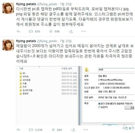 태연은 지난 22일 트위터를 통해 "메일함이 2000개가 넘어가고 있다"며 "이왕이면 압축파일로 한 번에 묶어서 주시면 고맙겠다. 확인은 더디지만 보내주시는 관련 자료들 차곡차곡 정리 중이다"고 말해 눈길을 끌었다.