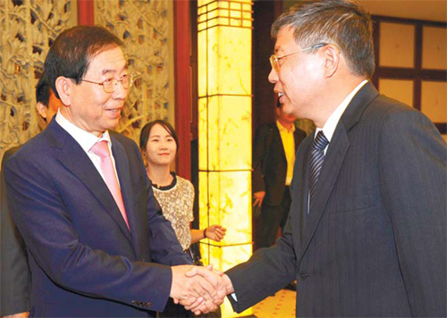 박 시장은 “중국이 눈부신 경제성장을 달성하며 세계적인 기업들이 탄생했다”며 “향후 연구개발(R&D)산업, 문화예술에 기반한 창조적 산업, 정보기술(IT) 등을 향해 나아가야 할 것”이라고 강조했다. 원 지사는 “메르스 이전 수준으로 관광객을 회복하는 것뿐 아니라 중국에 맞춰 발전의 수준을 끌어올리는 것이 목표”라고 말했다.