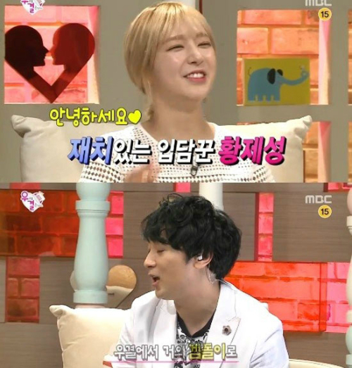 황제성은 지난 5월 방송된 MBC '우리결혼했어요4'에서 새 패널로 합류해 초아와 '우결'을 찍고 싶다고 말했다.