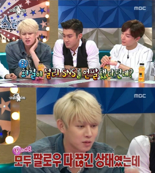 지난 7월 방송된 MBC '라디오스타'에서 김희철은 "설리는 어떻게 된 거냐?"는 질문에 "내가 설리 얘기 안하려고 '썰전'을 그만뒀는데"라며 발끈했다.