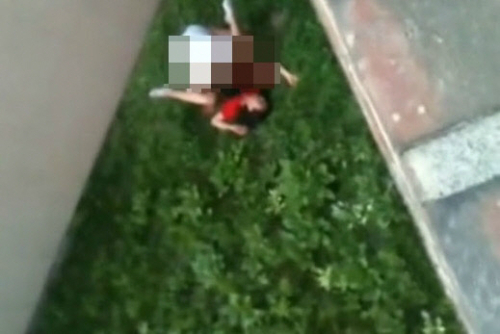 ‘S대’로 알려진 이 대학교에서 한 남녀는 대낮에 잔디밭 위에서 하의를 벗은 채 섹스에 몰두했다.