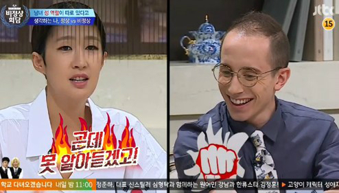 | 비정상회담, 홍진경 "미국 진짜 가부장적인 남자 위주 문화" 타일러 침착한 발끈 |