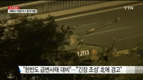 한 언론에 따르면 중국군의 장갑차 부대가 북·중 접경지역인 지린 성 옌지 시내를 통과했다고 보도 했다.