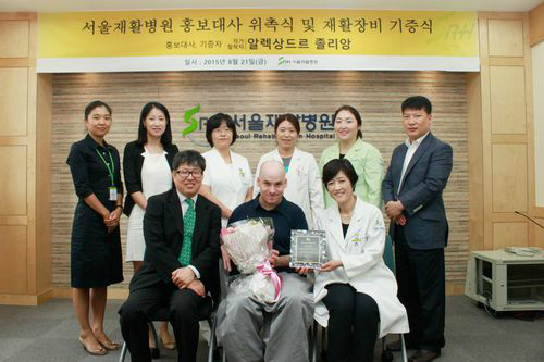 서울재활병원 이지선 병원장은 인사말을 통해 "우리병원에 홍보대사를 수락해주시고 트레드밀까지 기증해주신 알렉상드르 졸리앙에게 매우 감사드린다"며 "그의 삶의 내용이 담겨있는 저서를 교훈삼아 우리병원을 방문하는 환자와 보호자에게 더 배려하고 공감할 수 있는 재활의료기관으로 자리매김하겠다"고 말했다.