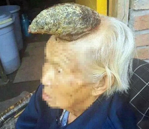 머리에 원인불명 '뿔' 생긴 중국 할머니