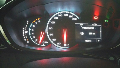 주행을 하면서 스티어링휠 조향축에서 조작할 수 있는 각종 편의기능도 사용해봤다. 왼쪽 와이퍼 조작바 끝에 있는 다이얼을 돌리자 차량 계기판에 순간연비와 연비, 주행거리, 현재 연료 수준으로 갈 수 있는 주행거리 정보가 하나씩 바뀌며 제공됐다.