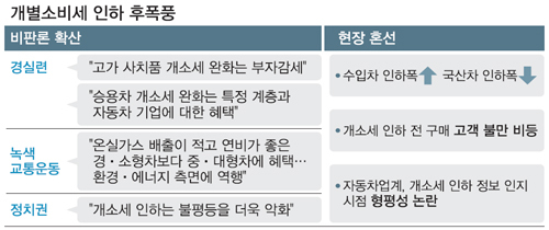 정부 '개별소비세 인하 조치' 후폭풍 거세