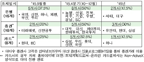 나머지 은행·증권사도 대부분 연내에 신규 크롬브라우저에서 금융서비스 이용이 가능하도록 관련 조치를 완료할 예정이다.