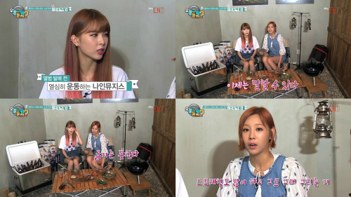 이날 방송에서 나인뮤지스 혜미와 성아는 "앨범 발매 한 달 전부터 열심히 운동을 하는데, 이제는 말할 수 있다"라며 운을 띄운 후 "나이가 나이인지라 굶지는 못하고 대신 운동을 많이 하는 편이다"라고 고백했다.