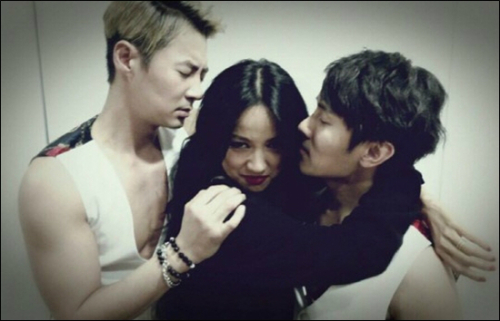 공개된 사진에서 김동완은 이효리와 포옹한 채로, 전진은 이효리의 등 뒤에서 에워싼 자세로 친밀함을 과시하는 모습이다.