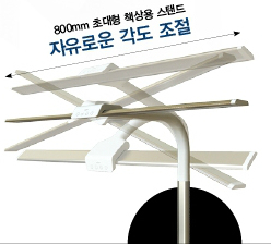 800mm 초대형 책상용 스탠드로 탄생한 ‘브로드윙’은 조명등, 연결부위, 받침대 등 3단계 구조로 되어 있으며, 특히 연결부위는 실리콘 재질을 사용함으로써 상하좌우로 자유로운 각도 조절이 가능해 사용자의 편리를 더해주고 있다.