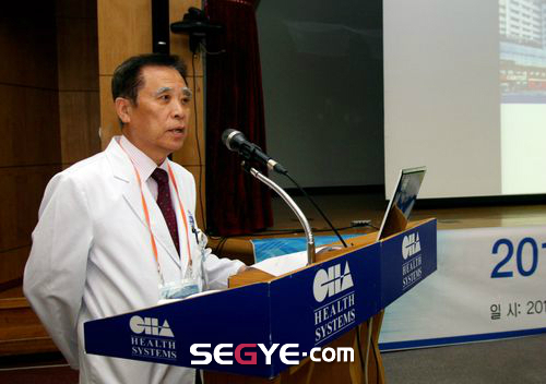 이두연 분당차병원 폐식도센터장이 ‘제 2회 폐식도센터 심포지엄’에서 인사말을 하고 있다.