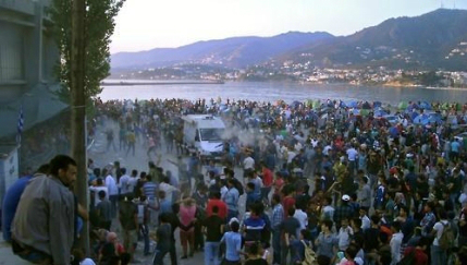 그리스 정부는 시리아 난민들을 우선으로 본토로 이송하고 있어 아프가니스탄인들도 본토 수송을 요구하며 피레우스 항으로 가는 페리선에 타려다 저지하는 경찰과충돌했고, 시리아 난민들과도 싸움이 벌어졌다.