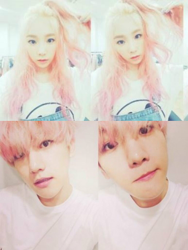 한 커뮤니티에서는 '커플염색같은 태연 백현'이라는 제목과 함께 사진 두 장이 게재되었다. 공개된 사진 속 태연은 머리카락의 부분을 살짝 들어올려 개구쟁이 같은 면모를 보였다. 소녀시대의 'Party' 활동 당시 태연은 금발로 탈색한 머리끝에 분홍색으로 포인트를 주어 보는이들의 이목을 집중시켰다.