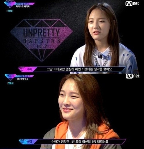 '언프리티랩스타2'의 문수아가 크리스탈과 닮은꼴 외모로 눈길을 끈다.