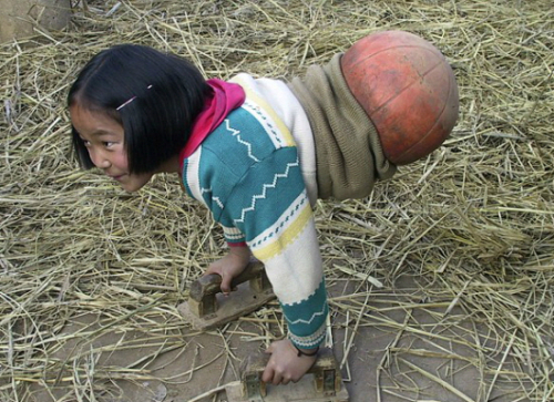 인민일보는 “아이는 가녀린 팔로 몸을 지탱해야 해서 ‘늘 팔이 저리다’고 말했다”며 “균형을 잡지 못해 넘어져 얼굴 등을 다치기 일쑤였다”고 전했다.