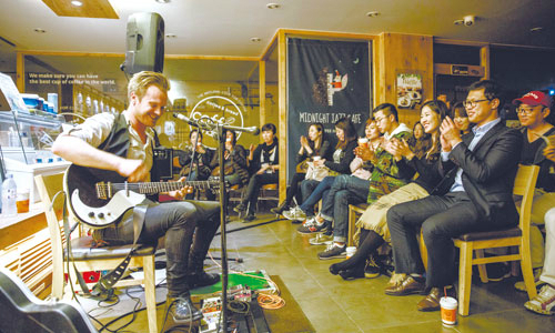 | 2014년 제 11회 자라섬 국제재즈페스티벌에 마련된 미드나잇재즈카페에서 노르웨이 뮤지션 아문 모르드가 공연하고 있다. |