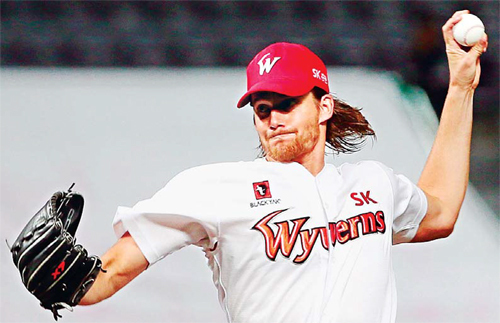 | 프로야구 SK의 외국인 투수 크리스 세든이 30일 인천 SK행복드림구장에서 열린 LG와의 홈 경기에 선발 등판해 역투하고 있다. 인천=연합뉴스 |
