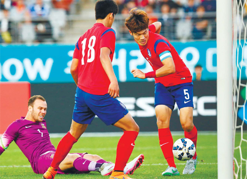 한국은 이번 아시아지역 2차예선을 치르는 팀 중 유일하게 무실점 행진을 이어가고 있다. 4경기를 치르면서 단 한 골도 상대에게 내주지 않은 데에는 안정된 수비진도 한몫했다는 평가다. 대표팀 최고령인 곽태휘(34·알 힐랄)는 나이를 잊은 수비력으로 상대 공격을 차단하고 김영권(25·광저우 에버그란데)과 호흡을 맞추며 승리를 이끌었다. 간혹 수비진에 균열이 일어났지만 이때마다 골키퍼 김승규(25·울산 현대)가 온 몸을 날리며 막아내 결국 무실점을 지켰다. 왼쪽 수비수로 출전한 박주호(28·도르트문트)의 분전도 눈에 띄었다. 박주호는 구자철의 결승골을 도왔고 호시탐탐 상대 측면을 파고들어 수비진을 흔들었다. 수비에서도 몇 차례 공격을 차단하는 등 공수에서 만점활약을 펼쳤다.