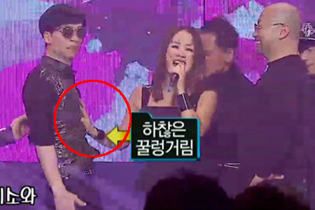 당시 방송에서 엄정화는 '초대'와 '포이즌'을 선곡해 열창했고, 특히 무대 도중 유재석의 가슴에 손을 얹는 '못된손'이 포착돼 시청자들의 눈길을 끈 바 있다.