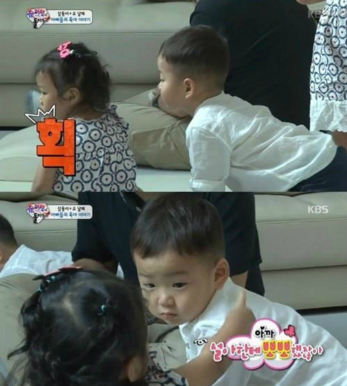 슈퍼맨이 돌아왔다 민국이 수아가 뽀뽀를 거절하자 당황하는 모습을 보였다.
