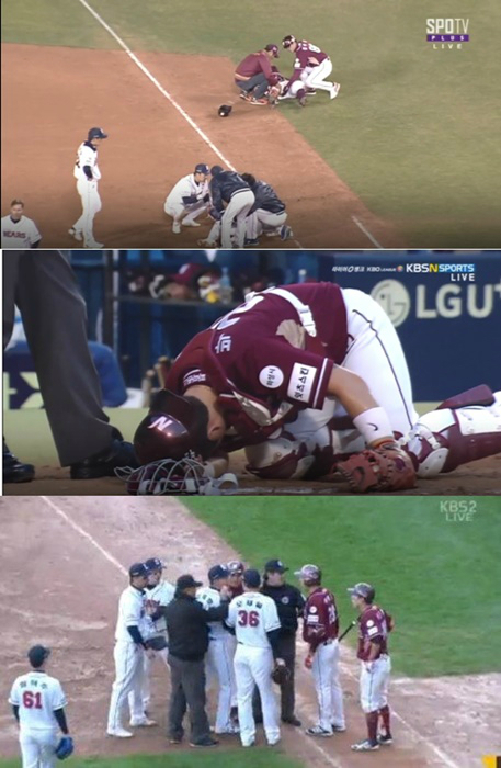 또한 넥센의 포수 박동원은 두산 타자 양의지에 배트에 머리를 맞고 피를 흘리면서 교체됐고 경기 후반 등판한 투수 손승락 역시 부상을 당해 마운드를 내려왔다.