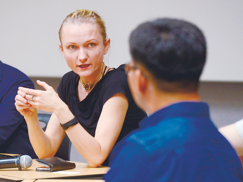 | 라일라 트레티코프 위키미디어 재단 사무국장이 16일 서울 용산구 국립중앙박물관에서 우리나라 위키미디어 프로젝트 참여자들에게 재단 현황과 주요 사업을 설명하고 있다. 남정탁 기자 |
