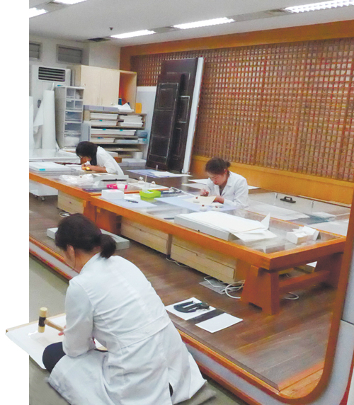 | 국가기록원 서울기록관 보존 전문가들이 시청각 자료 보존작업을 하고 있다. 성남=정진수 기자 |