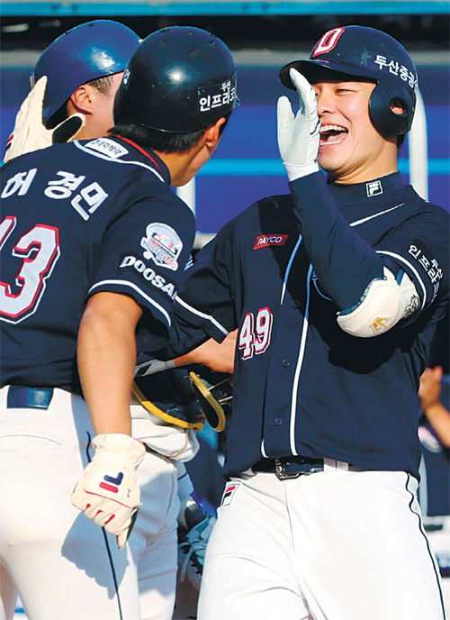 넥센과의 준플레이오프를 3승1패로 빠르게 끝낸 두산의 가장 큰 고민은 3번 타순이었다. 주로 3번에 배치됐던 민병헌이 극심한 부진을 보였기 때문. 그러나 김태형 감독은 “되든 안 되는 민병헌에게 3번을 맡긴다”고 믿음을 보였고, 이날 민병헌은 2홈런 4타점으로 대폭발하며 김 감독의 신뢰에 부응했다.