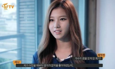 지난 7월 방송된 네이버 TV캐스트 'TWICE TV(트와이스 티비)'에서 사나는 "중학교 3학년 때 친구와 쇼핑을 하다가 일본에서 캐스팅 받았다. 이후 JYP엔터테인먼트에 오게 됐다"고 말했다.