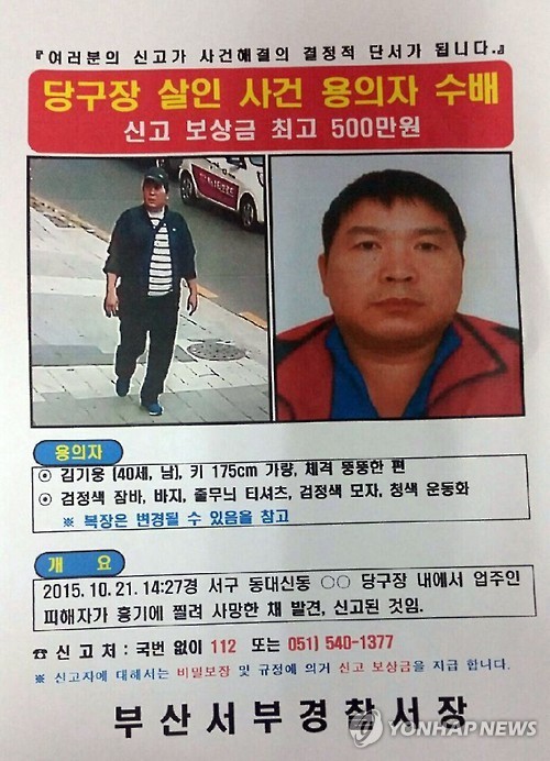부산 당구장 여주인 살인용의자 공개수배…포상금 500만원