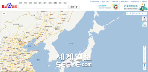 | '일본해'로 단독 표기된 중국 최대 포털사이트 바이두 홈페이지(사진=서경덕 교수 제공) |