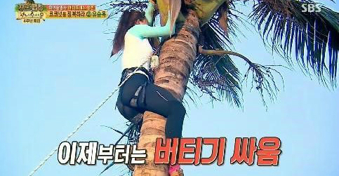 이날 유승옥은 "평소에 운동을 열심히 해서 허벅지 힘 하나는 자신 있다"며 코코넛 따기에 자신감을 드러냈다.