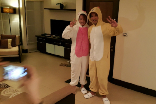 또 귀여운 캐릭터 잠옷을 함께 입고 밝은 표정을 지으며 행복한 결혼 생활을 기대케 했다.