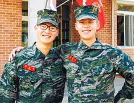 | 해병대 제2사단 포8대대의 같은 중대에 근무하는 김현우(오른쪽), 현민규 일병. 해병대 제공 |