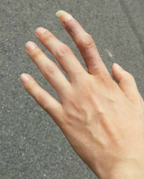 | 군 복무 중 손가락이 탈구되는 부상 이후 제때 조치를 받지 못해 의병전역한 이모씨의 부상 부위. 군에서 복합부위통증증후군(CRPS)이라는 희귀난치성 질환이 발병한 이씨는 현재 손가락에서 시작된 통증이 상반신까지 전이돼 하루에도 몇 차례씩 극심한 고통에 시달리고 있다. |