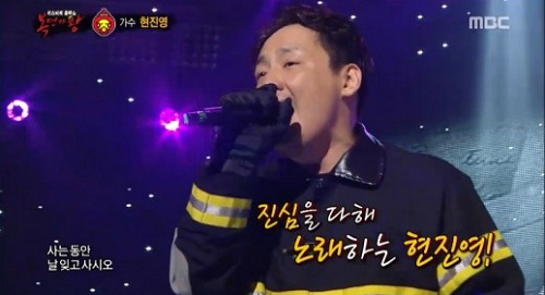 이날 방송에서 현진영은 '꺼진 불도 다시보자 119'로 등장해 뛰어난 가창력을 선보였지만 아깝게 탈락했다.