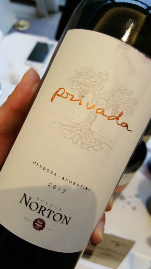 에노테카코리아가 선보인 노통(Norton)은 크리스탈 유리로 유명한 스와로브스키사 소유한 와이너리다. 노통 프리바다(Privada)는 프라이빗(Private)이라는 뜻으로 원래 소유자 가족이 가까운 친구들과 즐기기 위해 소량만 좋은 뀌베를 선정해 비축하던 와인이었다고 한다. 말벡, 카베르네 소비뇽, 메를로를 블렌딩하며 수령 50 ~ 80년의 포도나무에서 손수확한다. 블랙체리와 농익은 베리, 가죽, 담배, 커피등의 복잡하고 스모키한 아로마가 느껴지며 매우 풍부한 질감이 매력적으로 다가온다.