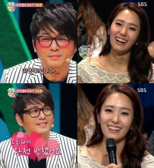 이날 방송에서 신승훈은 "SBS 막내 기상캐스터들이 왔다"는 MC 서장훈의 말에 당황하는 모습을 보였다.