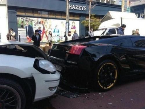 | 지난 3월 경남 거제에서 SM7 차량이 외제 스포카인 람보르기니 차량을 뒤에서 추돌한 것처럼 일부러 교통사고를 낸 현장. 자료사진 |
