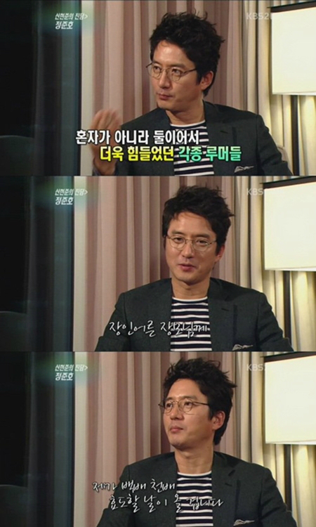 과거 방송된 KBS 2TV '연예가중계'의 코너 '신현준의 진담'에 출연한 정준호는 신현준과 사적인 이야기를 나눴다.