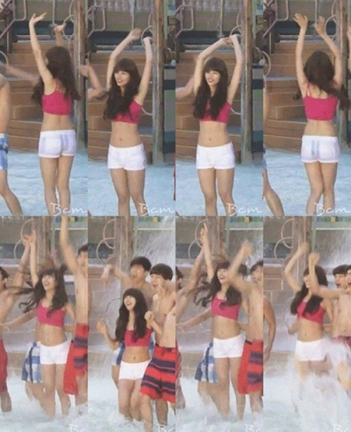 올라온 사진은 과거 수지와 2PM 멤버들이 함께 출연한 한 광고 촬영 현장 모습으로 수지는 핑크계열 탱크톱에 하얀색 핫팬츠를 매치한 수영장 패션으로 시선을 사로잡았다. 수지의 노출은 과하지 않지만 탄탄한 복근과 함께 늘씬한 몸매를 드러내 관심을 모았다.