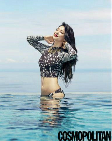 최자 연인 설리는 과거 'COSMOPOLITAN' 화보 촬영에서 섹시미를 발산했다.