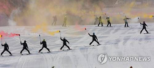 진행요원들이 연막 스키를 타는 이벤트로 슬로프를 개장하자 오전에만 3천여 명에 가까운 스키어가 찾아 은빛 슬로프를 질주했다.