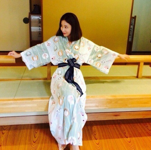공개된 사진 속 기은세는 이국적인 실내를 배경으로 유카타를 입은 그녀의 모습이 담겨 시선을 사로잡았다.