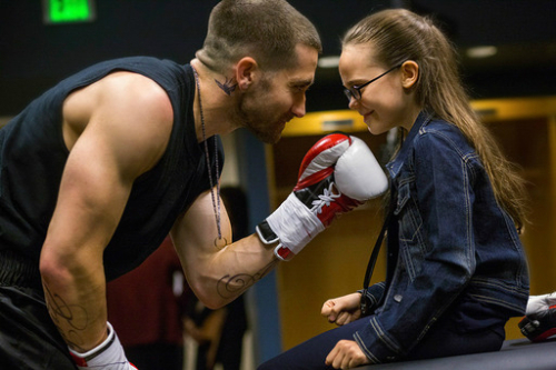 파이터의 세계를 온몸으로 느끼게 하는 것이 이 영화의 강점이지만 여기에 한 가지 매력을 보탠다. 부성애다. 영화는 세계 챔피언이었던 빌리 호프(제이크 질렌홀)가 뜻하지 않은 사고로 아내 모린(레이철 매캐덤스)를 잃고 하나뿐인 딸을 되찾기 위해 생애 가장 어려운 시합에 도전하는 이야기를 그린다. 부와 성공, 명예를 위해 시합에 나서는 것이 아니라 양육권을 되찾고 ‘진정한 아빠’로 거듭나기 위해 출전하는 한 남자의 내면적 성장과정을 카메라는 따라간다.