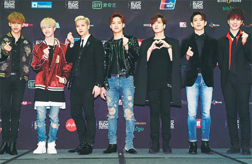 | 아이돌그룹 갓세븐이 2일 홍콩 AWE컨벤션센터에서 열린 Mnet 아시안 뮤직 어워즈(MAMA) 행사에 앞서 아티스트웰컴 미팅에 참석해 포즈를 취하고 있다. Mnet 제공 |